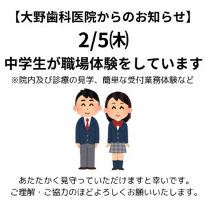 医療法人応世会 大野歯科医院です🦷 2/5㈭は北区の中学生が職業体験に来ています。